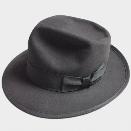 1960年代にSTETSONに吸収合併される以前のアイテムで、サイズタグが50年代に使用された紙タイプ, ポマードガードが付かない天裏のロゴデザイン等より、約50年代初期頃の物と推測できます。(サイズタグは千切れており、レザースベリに貼り付けてあります。