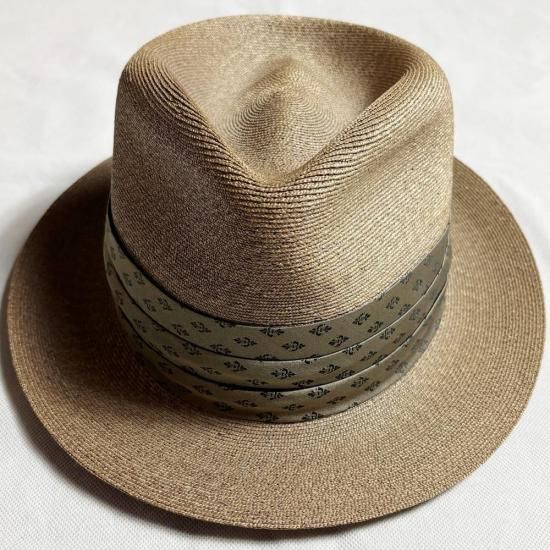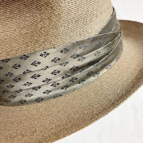 珍しいリボンデザインのミラン素材フェドラ型ハット! STETSONと並ぶ, 高級ハットメーカー : DOBBS(ドブス)の、推定50年代~60年代初期頃のアンユージュアルリボンミランハットが入荷!