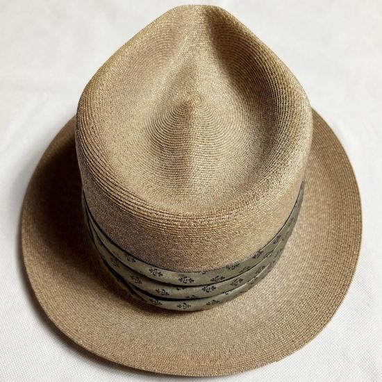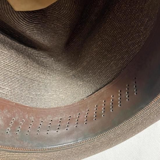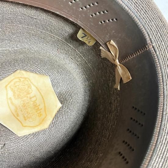 ヴィンテージハット業界において、夏物の麦わら系のハットは割れやすくダメージが入りやすいのが一般的であり、50年代前後の物は極めて球数が少なく、現役で活躍可能なコンディションの物は現存数が非常に少ない激レアアイテム!