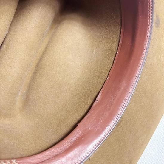 ここまでワイドなブリムを有した、ブラウンカラーのランチャーハットは中々見つからず、尚且つ太幅リボンの個体は非常に珍しいです。存在感抜群のウエスタン系ハットをお探しでしたら、こちら非常にオススメです。