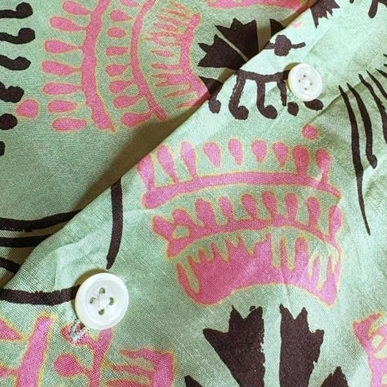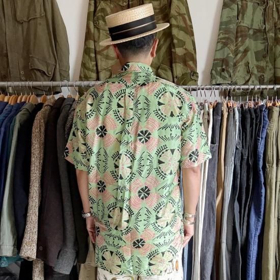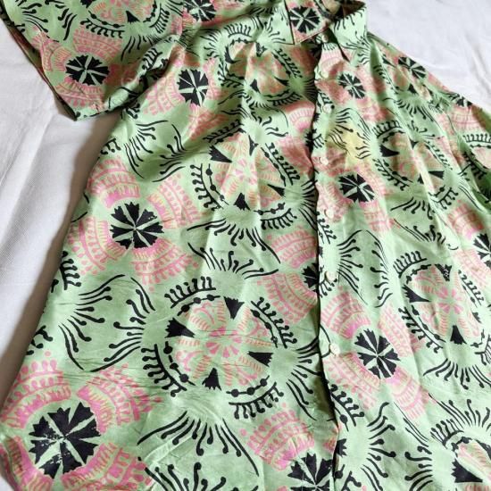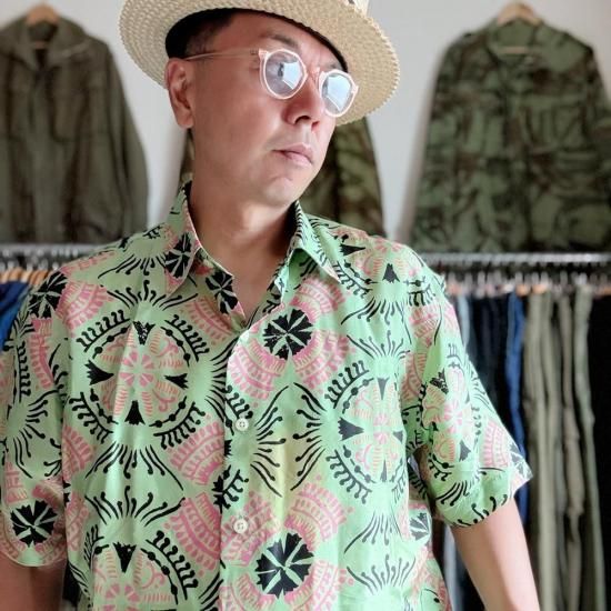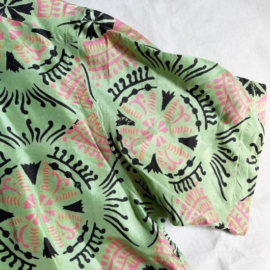 更にこちらは発色の良いライムグリーンベースに、アステカ調の民族柄を落とし込んだ一品。