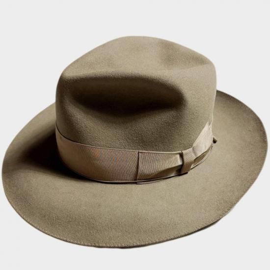 こちらは古い年代のものと比べるとやや密度が粗いかと思いますが、それでもしなやかな、非常に軽くて被った時にストレスを感じないようなライトラビットファーフェルトを採用。適度な硬さも併せ持っており、しっかりと形をキープしてくれます。