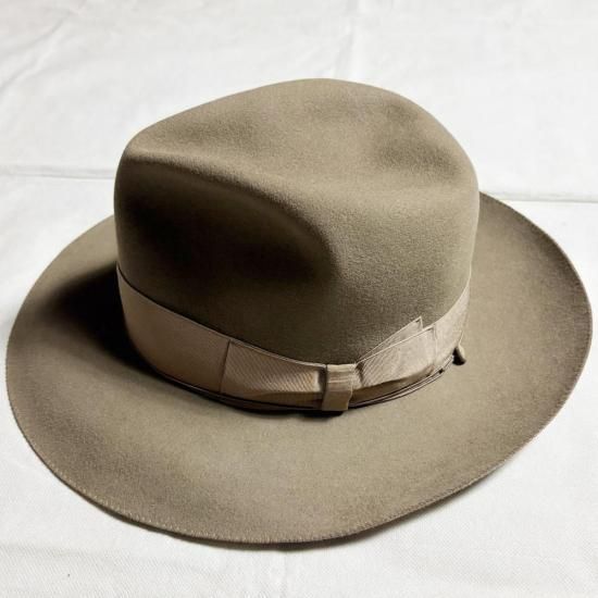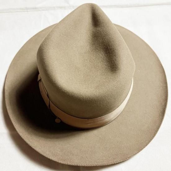 被った時のシルエットで、現行品とは異なる、当時ならではの素晴らしい雰囲気を体感できるハットです。比較的近代の物ですが、サイズやシルエットも素晴らしく、オーカーのワントーンカラーも大変高い人気を誇ります!ここまで条件の揃った超ビッグサイズの個体は中々ありませんので、どうぞお早めに!