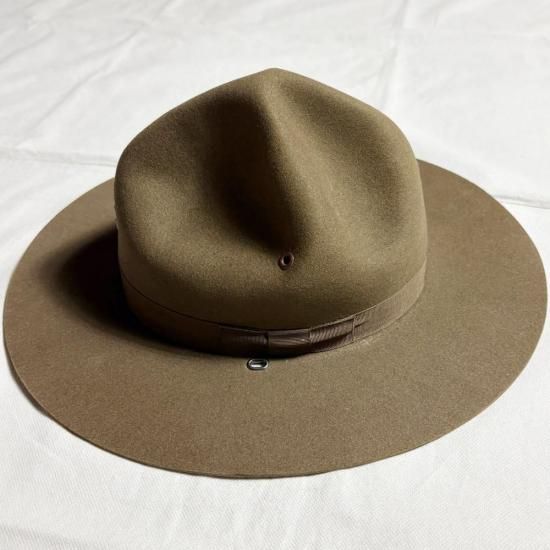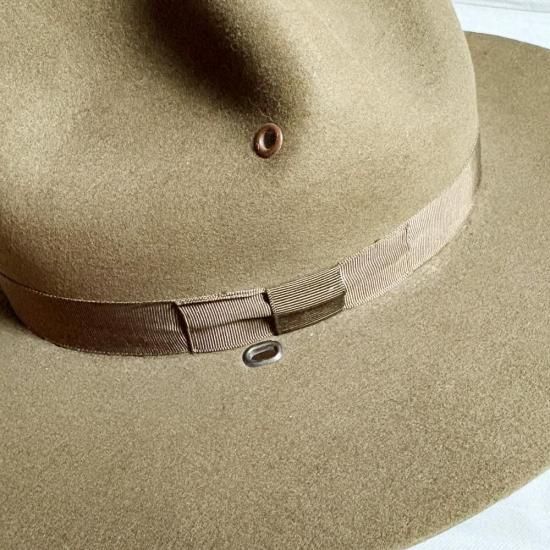絶妙にオリーブとブラウンが混ざった深みのあるカラーリングです! またこの当時は地方の保安官や山岳部隊の兵士などが着用していたとされ、マウンテンハット(山岳帽)と表現される事もあります。