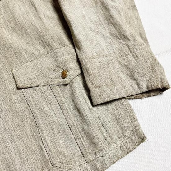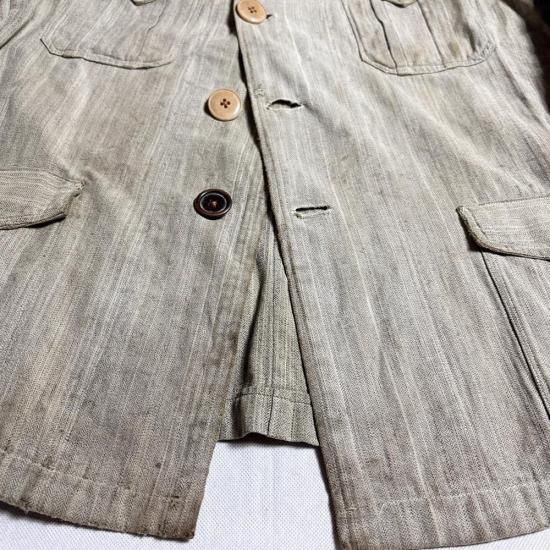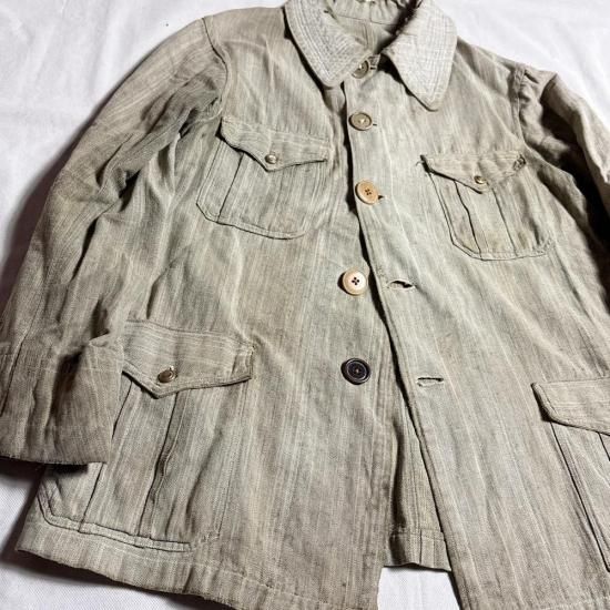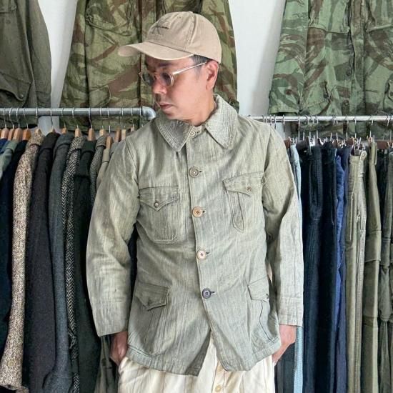 フレンチハンティングジャケットの希少なレアファブリック!推定20年代~30年代頃の、フレンチHBTストライプコットンハンティングジャケットが入荷!大変貴重なフレンチワークアイテムのトップピース!