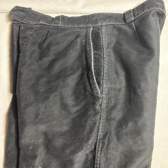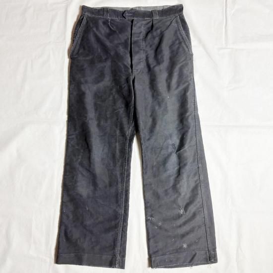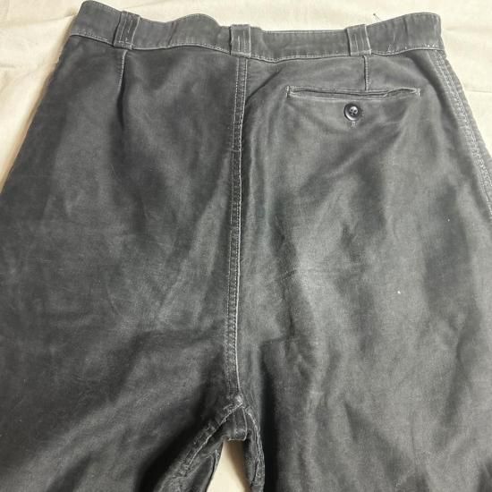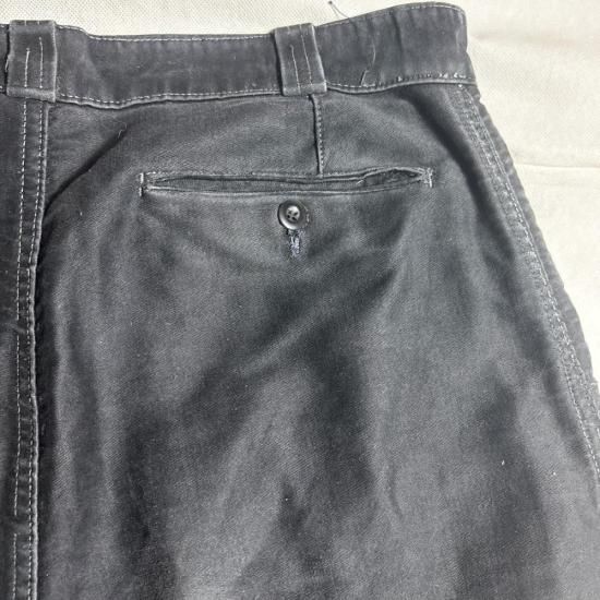 嬉しいベルトループ付きのブラックモールスキントラウザーズ ! 推定40年代後期~50年代頃と思われる、フレンチワークの代表的なブラックモールスキンチョアトラウザーズ が入荷。