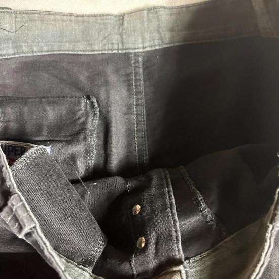 状態はご覧の様に全体的な若干の色落ち具合やスレ、小傷あり、裾ステッチに若干解れあり、両膝部分にフェード感やリペア箇所あり、裾にも細かいリペアやペンキ汚れなどございますが、問題のある様なダメージはなく、まだまだ現役で着用可能なグッドコンディションです。