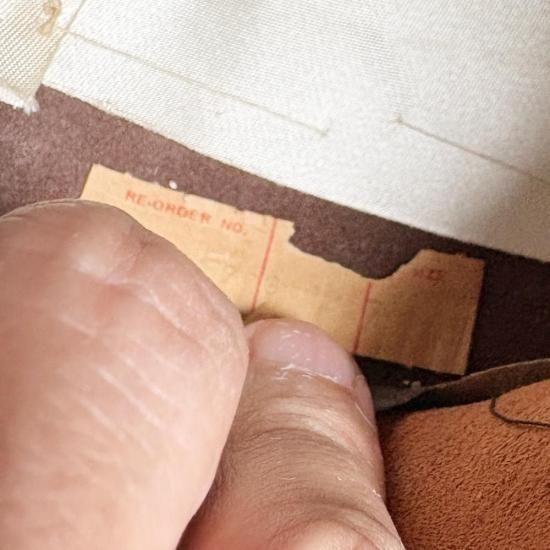 サイズタグは欠損、レザースベリとライナーのロゴ刻印内が星ではなくリーフになっており、透明ポマードガード付きというディテール、プロダクトシールデザインより、約50年代頃の物と推測できます。