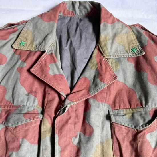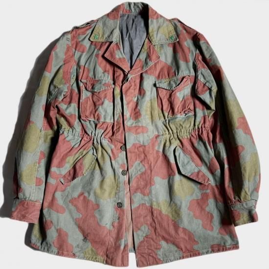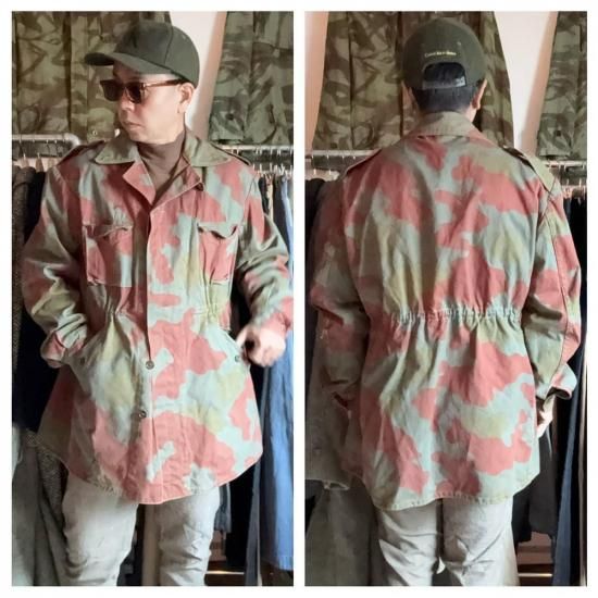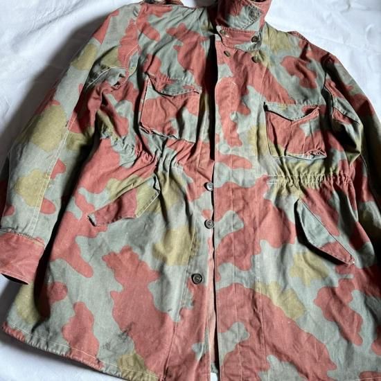 TELO MIMETICO CAMO(テロミメティコカモ)は、軍用として初めて大量生産されたカモフラージュ柄と言われており、1929年に初めて導入されました。よってM1929としてイタリア陸軍にて採用され、その後、60年代にサンマルコ海兵隊などを代表とする、イタリア海軍仕様モデルが登場。こちらのジャケットはそのイタリア海軍モデルに当たります。(※別名サンマルコカモなどと呼ばれる事で有名。)