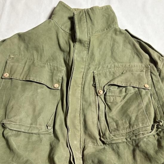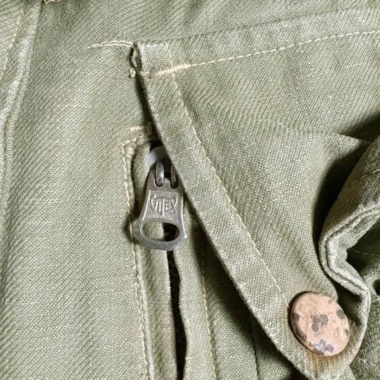 フランス軍の空挺部隊向けに、1947年型降下ジャケット(Veste de saut TAP modèle 1947)が登場。TAP 47は年代毎に服の構造や迷彩パターン(通称リザード迷彩)が徐々に変化していますが、今回のこちらはTAP 47と呼ばれる、最初期タイプです。(※こちらの1STや、この次のTAP47/51などはフランス軍のヴィンテージウェアの中でもトップオブトップのレア度を誇ります!)
