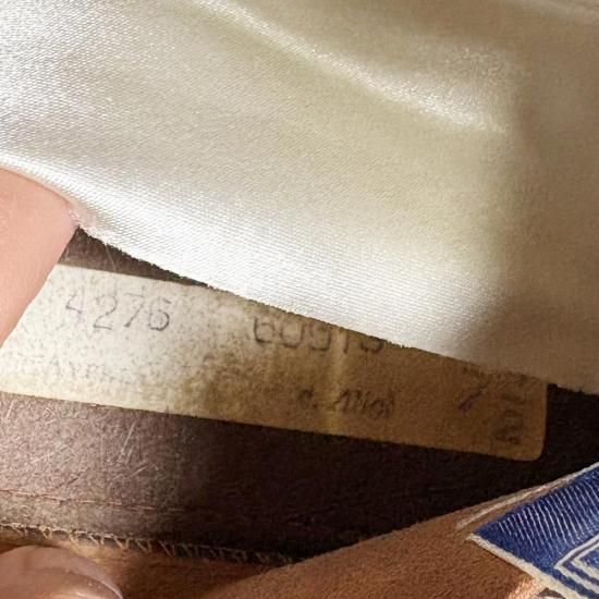 サイズタグは白地に青文字の布タグで、プロダクトシールやレザースベリの取り付け方法から見ても、50年代〜60年代頃の物と推測できます。