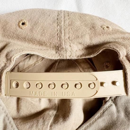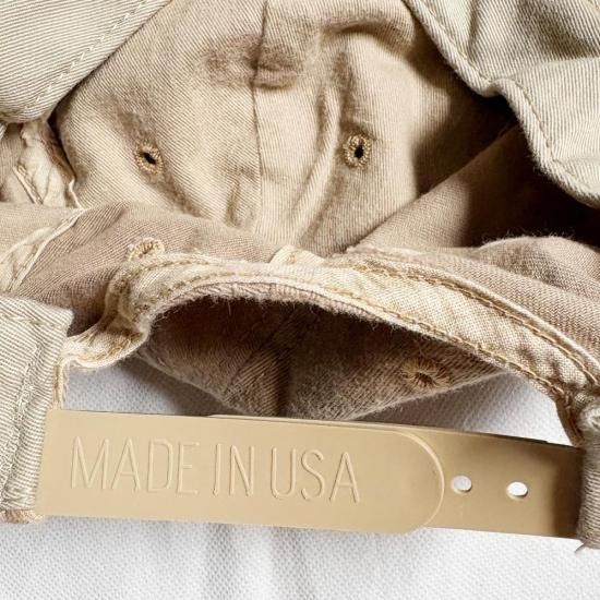 こちらはコットンツイル素材で通年使用可能です。バックアジャスター付きのスナップバックキャップ。アジャスター部分にMADE IN USAの記載が入ります。