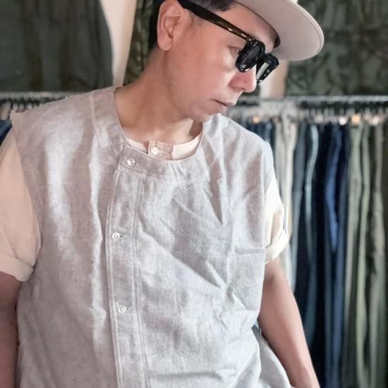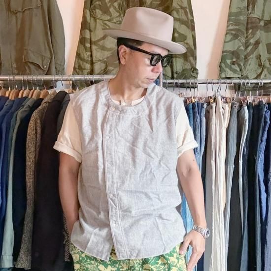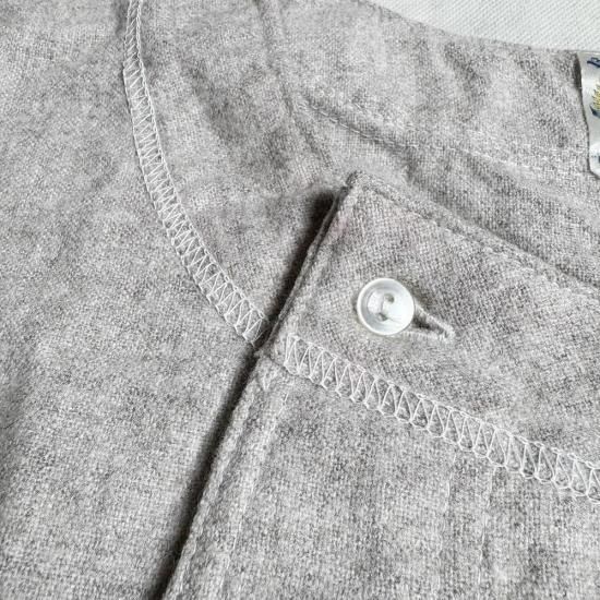 こちらは比較的薄手の、フランネルウール/コットン素材を採用したアイテムです。ウール 混ですが、ライトな質感ですので、Tシャツなどとレイヤードも出来るくらいの厚みなので、オールシーズン着用可能な一品。